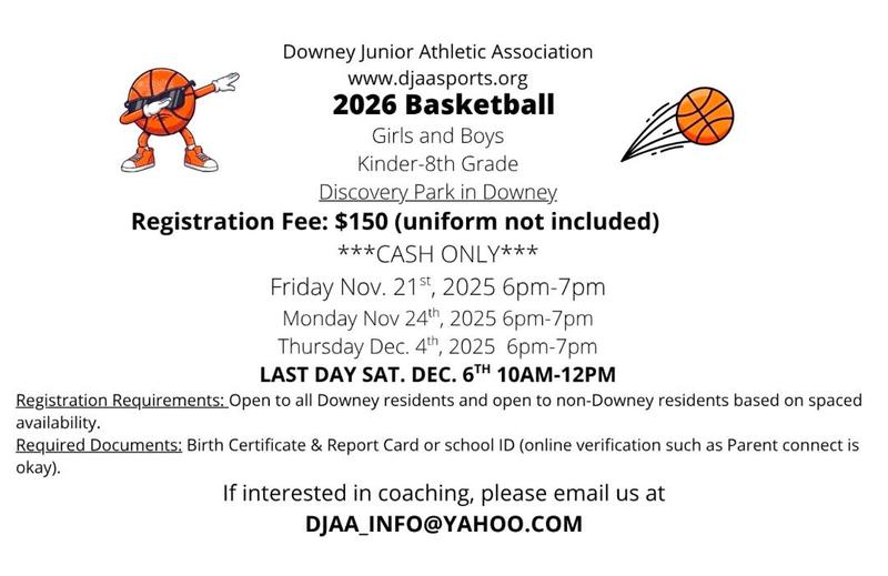 Welcome to the DJAA official website. DJAA is a city co-sponsored non-profit youth volunteer organization for boys and girls ages TK to 8th grade. We have proudly been serving Downey since 1954. The primary purpose of this organization is the belief that every player, regardless of ability, is afforded the opportunity to learn and play sports in an atmosphere where competition exists but has a low profile.